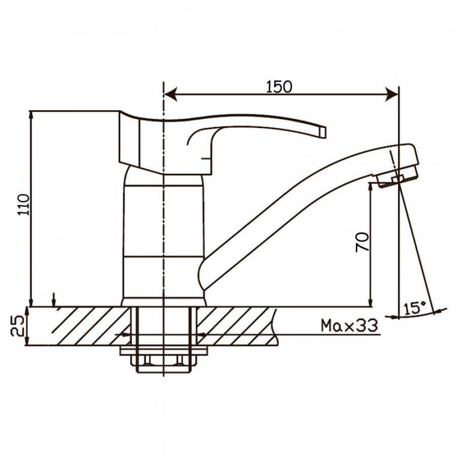 - Зручний вилив довжиною 15 см – оптимальна довжина для комфортного миття рук та обличчя, підходить для більшості стандартних умивальників.