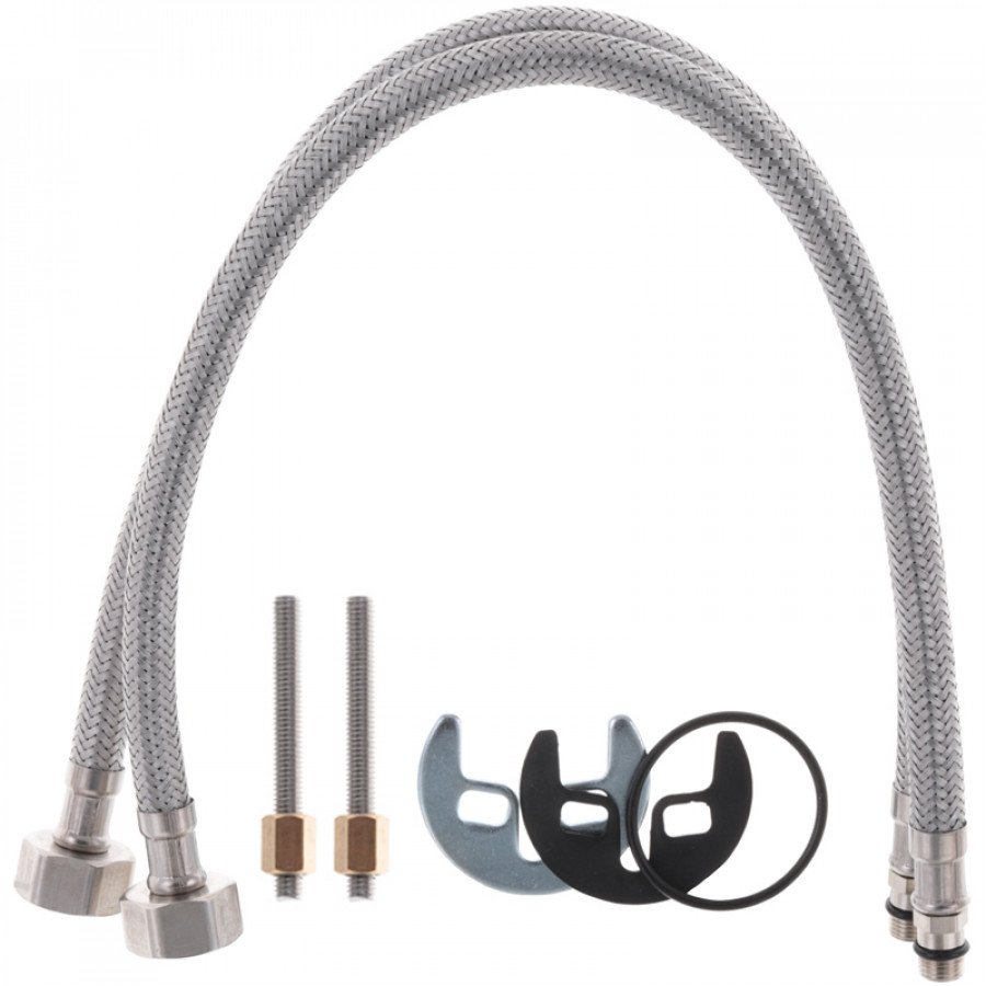 - Встановіть змішувач, підключивши гнучкі шланги до системи водопостачання.