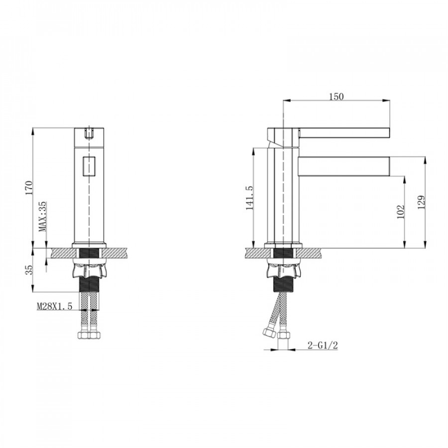 - Під’єднайте гнучкі шланги до водопровідних труб, перевірте герметичність з’єднань.