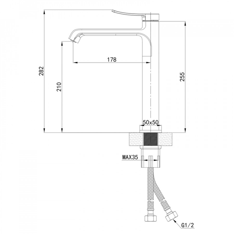 - Висота змішувача: висока конструкція для зручності використання з різними типами умивальників;