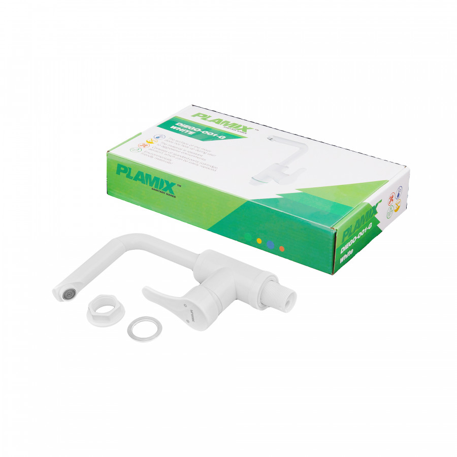 Теги: Змішувач для умивальника Plamix Diego-001-G White (без підведення) (PM0656), , PM0656, O&L, Крани та змішувачі