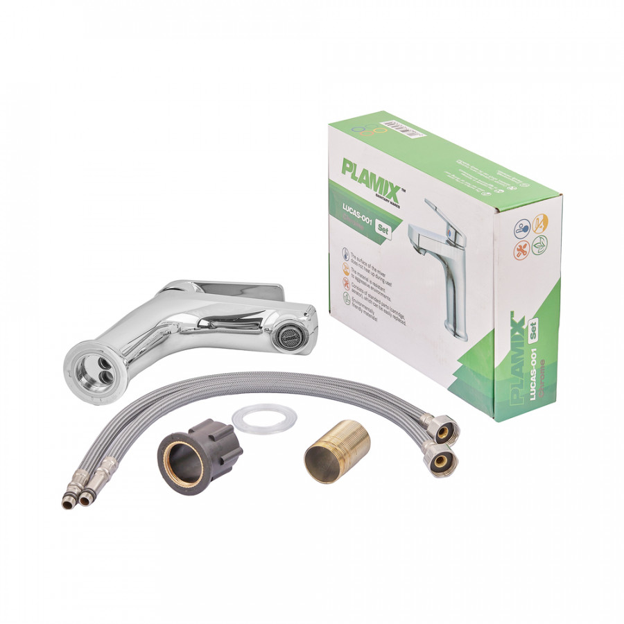 Змішувач для умивальника Plamix Lucas-001 SET Chrome з підведенням (PM0707) – ідеальне рішення для вашої ванної кімнати