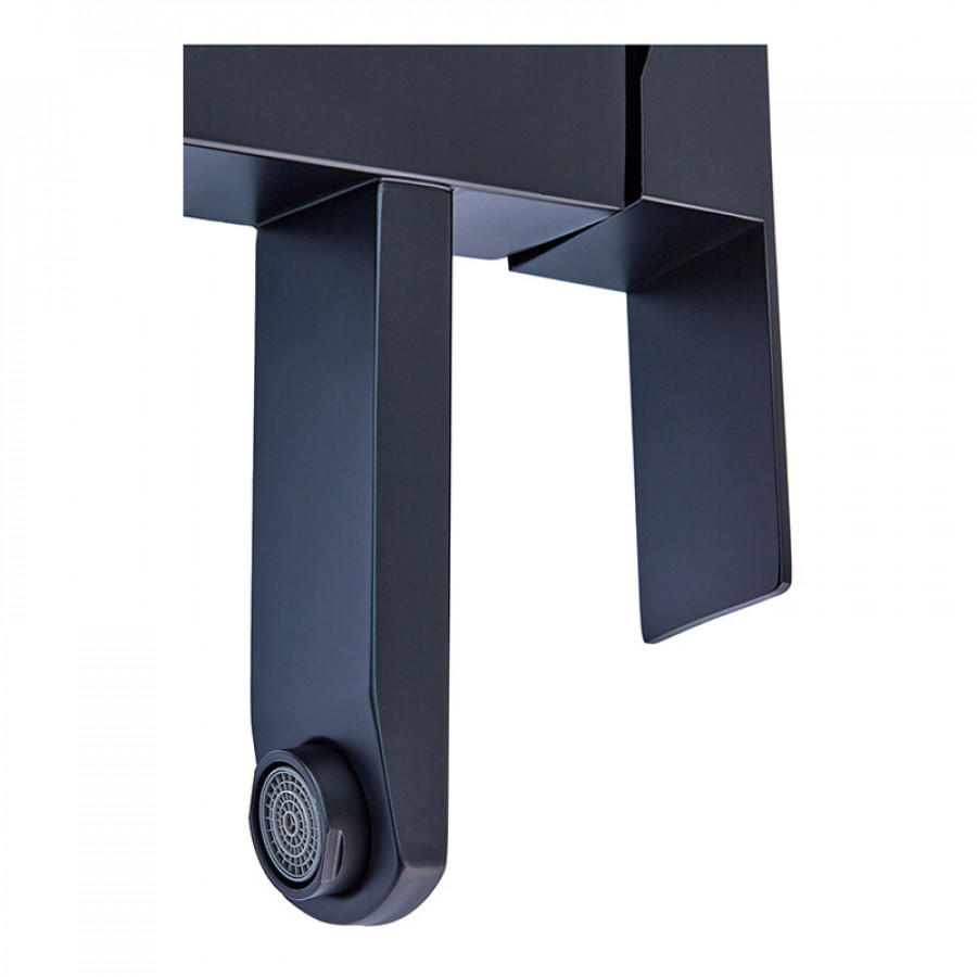 - Сучасний дизайн. Чорне матове покриття робить змішувач акцентним елементом інтер’єру, що впишеться в будь-який стиль – від лофту до хай-теку.