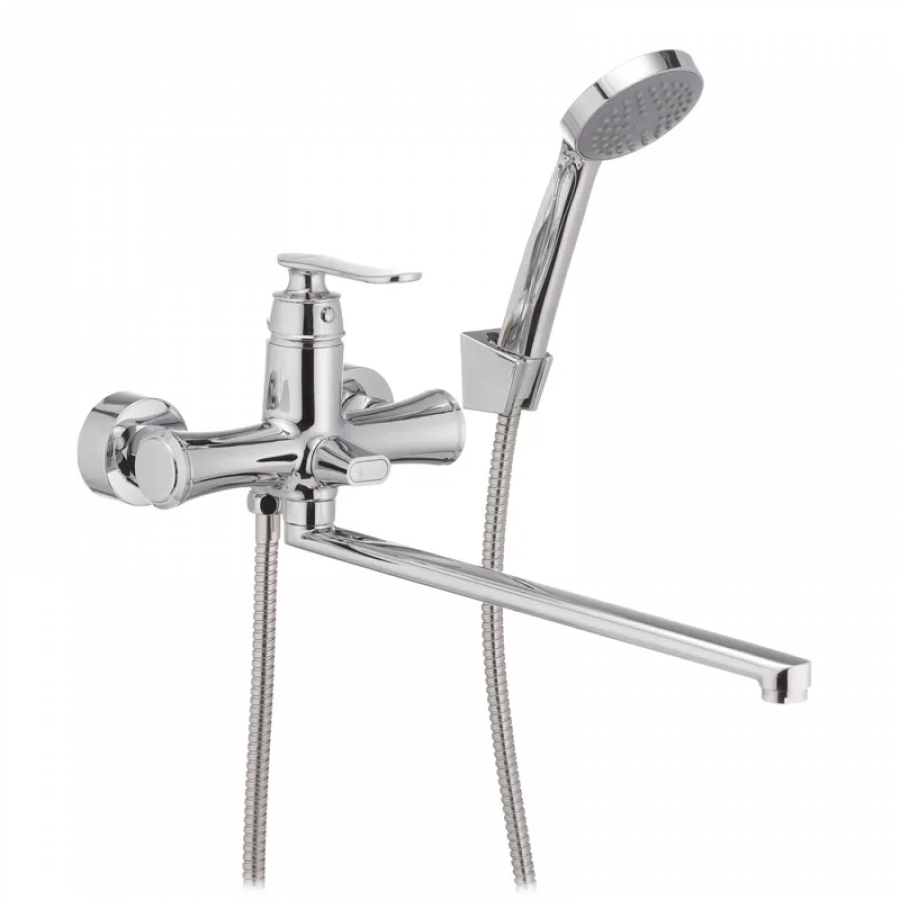- Тип монтажу: настінний, що дозволяє зручно встановити змішувач поруч із ванною;