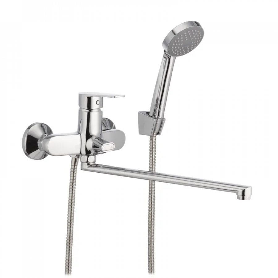 - Універсальність – довгий вилив дозволяє використовувати змішувач у ваннах різного розміру.