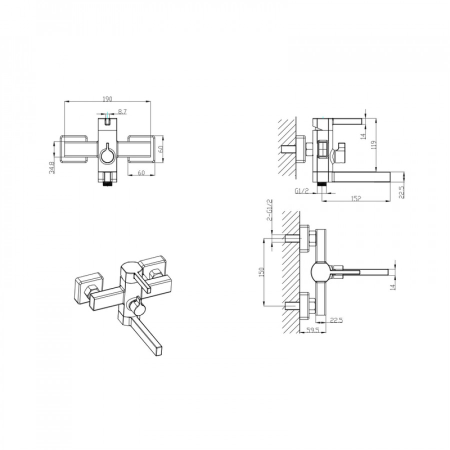- Монтаж: настінний, два отвори для підведення води