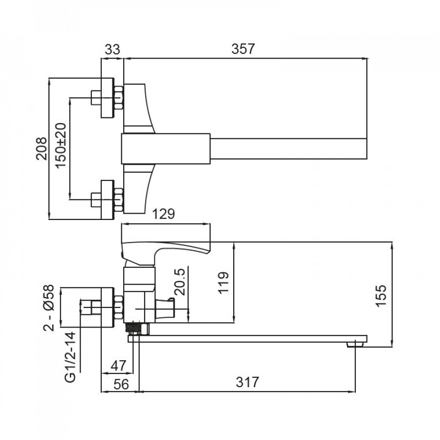 - Тип змішувача: для ванни з довгим виливом;