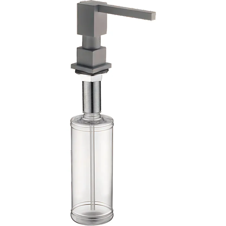 - Забарвлення дозатора: Графітовий відтінок чудово виглядає поруч із нержавіючими чи темними мийками.