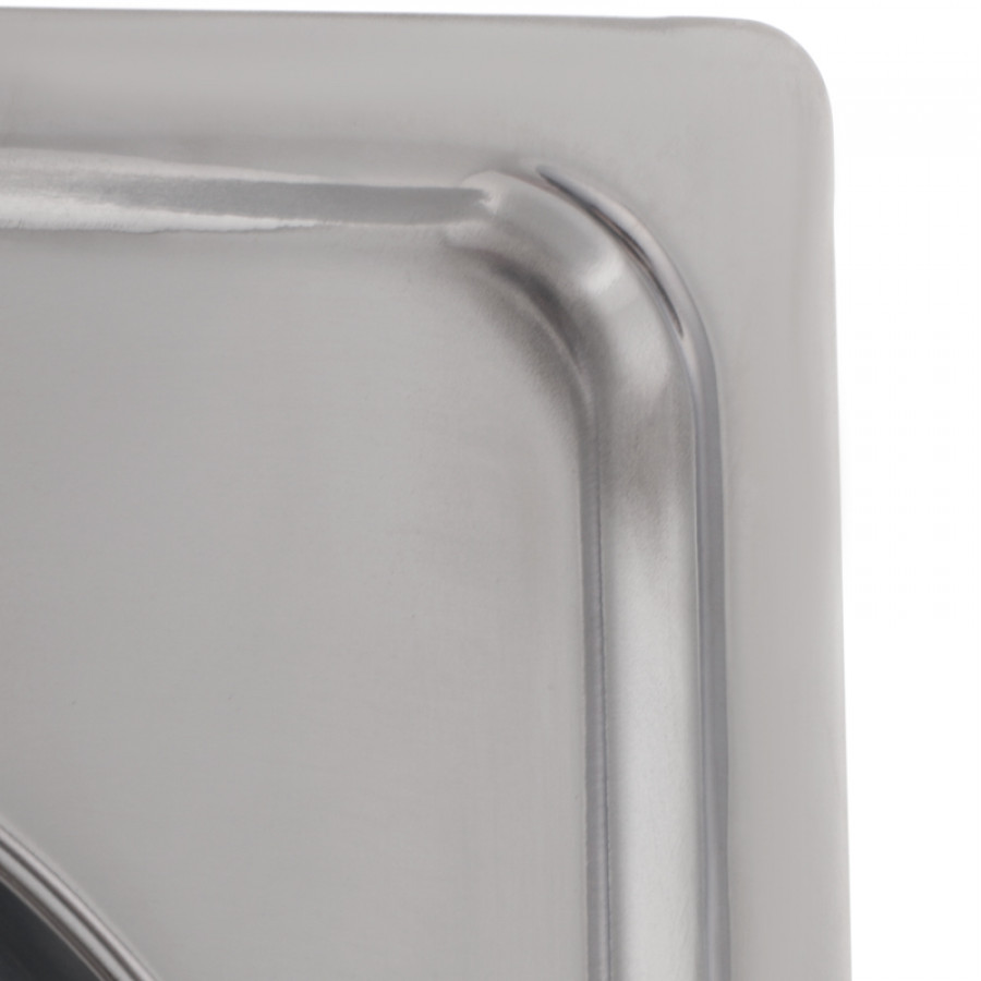 - Висока міцність і довговічність – мийка виготовлена зі сталі марки AISI 304, що забезпечує стійкість до корозії, подряпин і механічних пошкоджень;