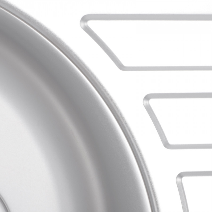 - Універсальність монтажу: мийка підходить для установки в різні типи кухонних столів – дерев’яні, ламіновані, кам’яні.
