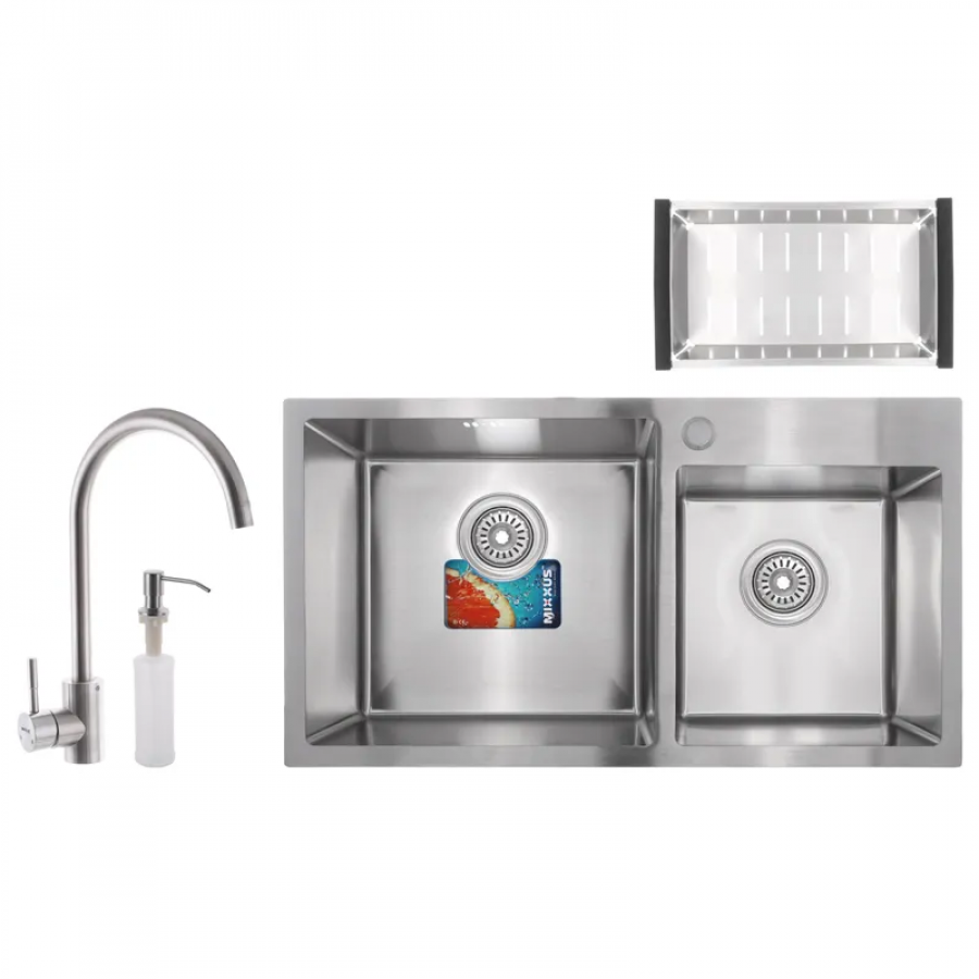 Набір Mixxus SET-7843D-220x1.0-Satin включає все необхідне для комфортної та функціональної кухні: мийку, змішувач, диспенсер для миючих засобів та сушку для посуду. Цей комплект відомого бренду MIXXUS поєднує стильний дизайн, високу якість матеріалів та інноваційні технології, які забезпечують довговічність і зручність у використанні.