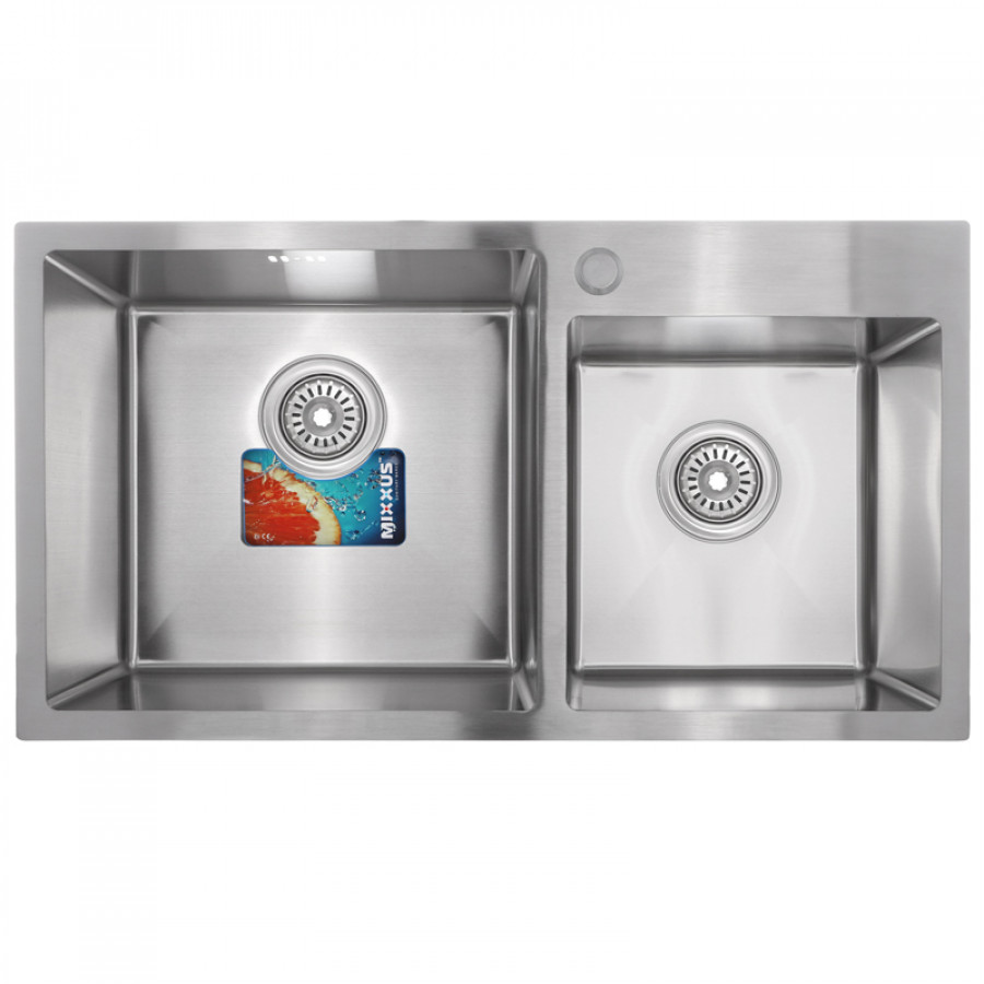 - Мийка розміром 784х430 мм з глибиною чаші 220 мм, виготовлена зі сталі з матовим сатиновим покриттям, що забезпечує стійкість до подряпин та корозії;