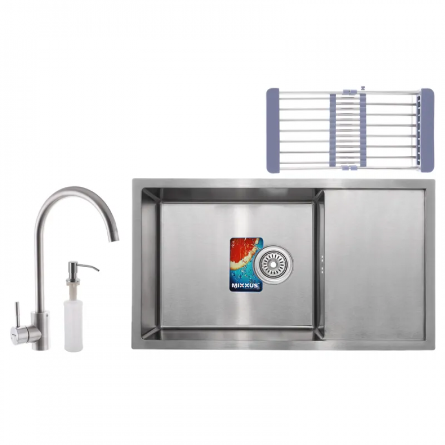 Набір Mixxus SET-7844-200x1.0-Satin (мийка + змішувач + диспенсер + сушка для посуду) (MX0582)