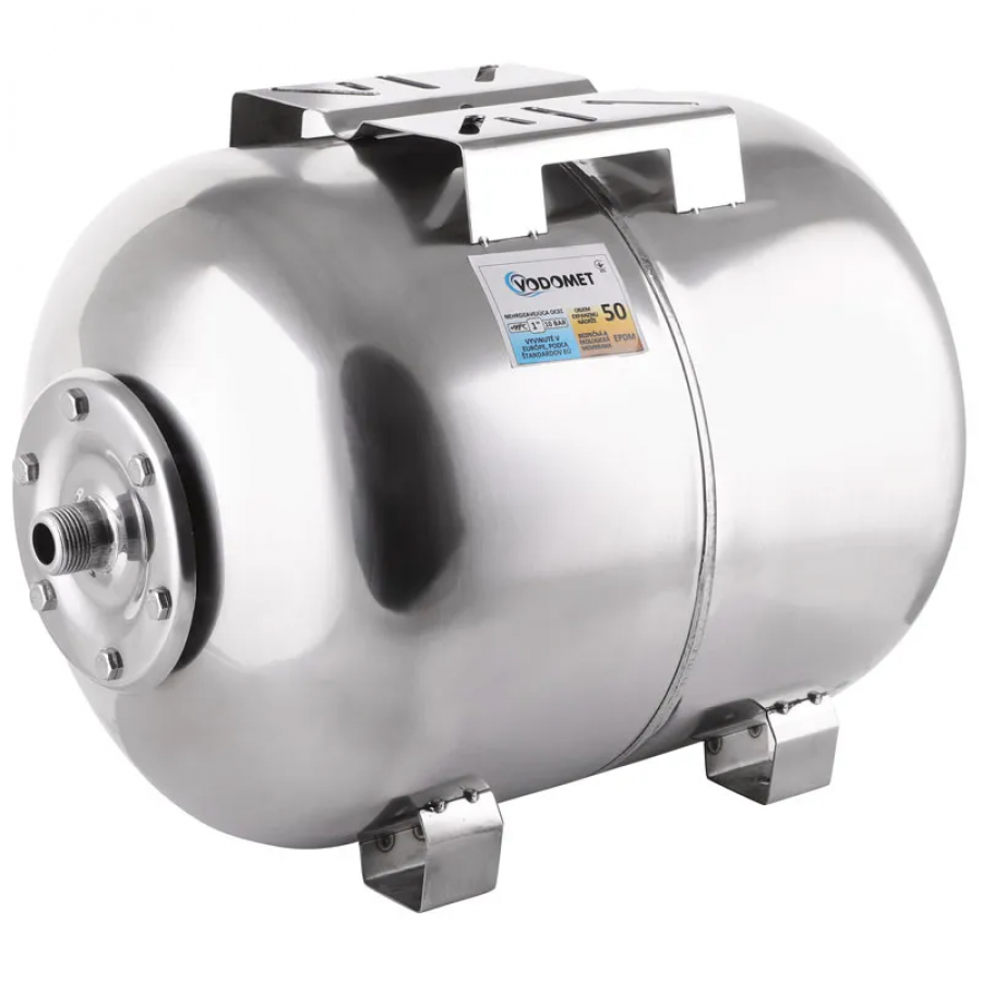 Гідроакумулятор Vodomet горизонтальний 50л (корпус з нержавіючої сталі) – надійне рішення для вашої системи водопостачання