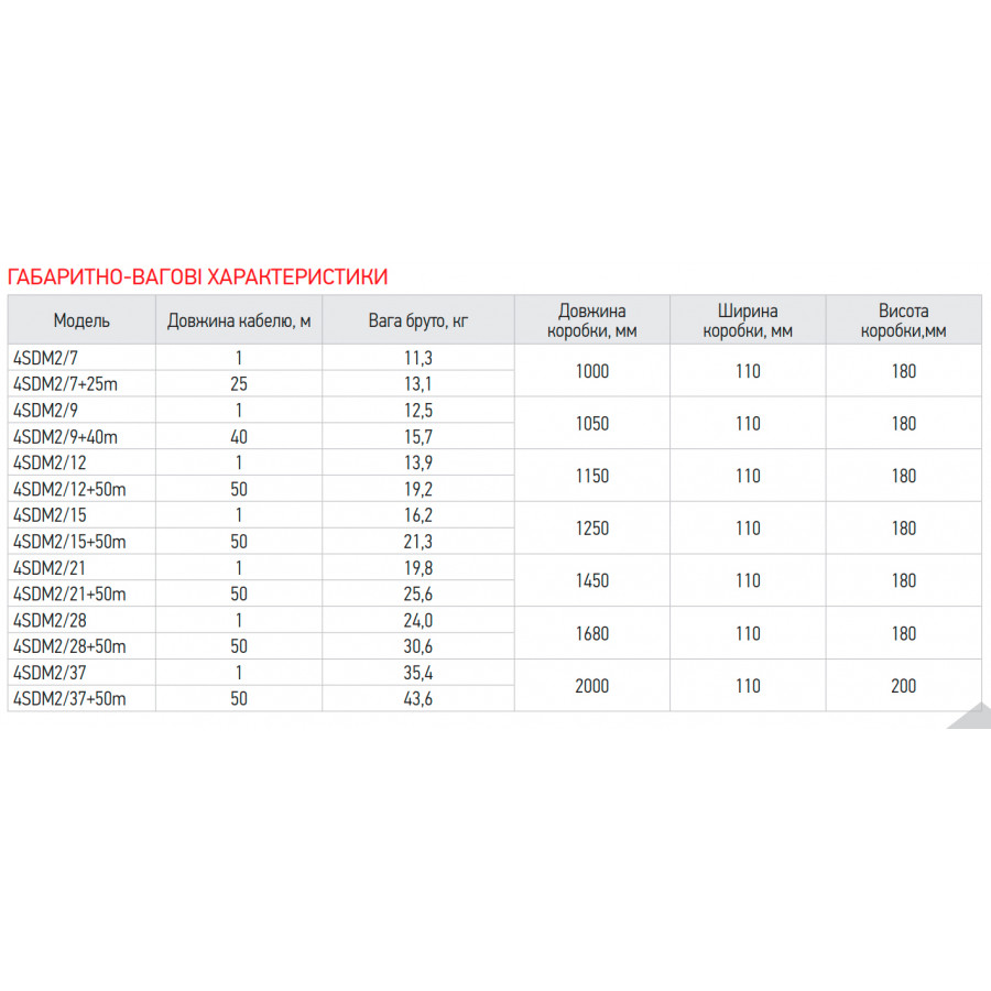 Технічні характеристики насосної установки Koer 4SDM 2/28 + пульт (KP2631)