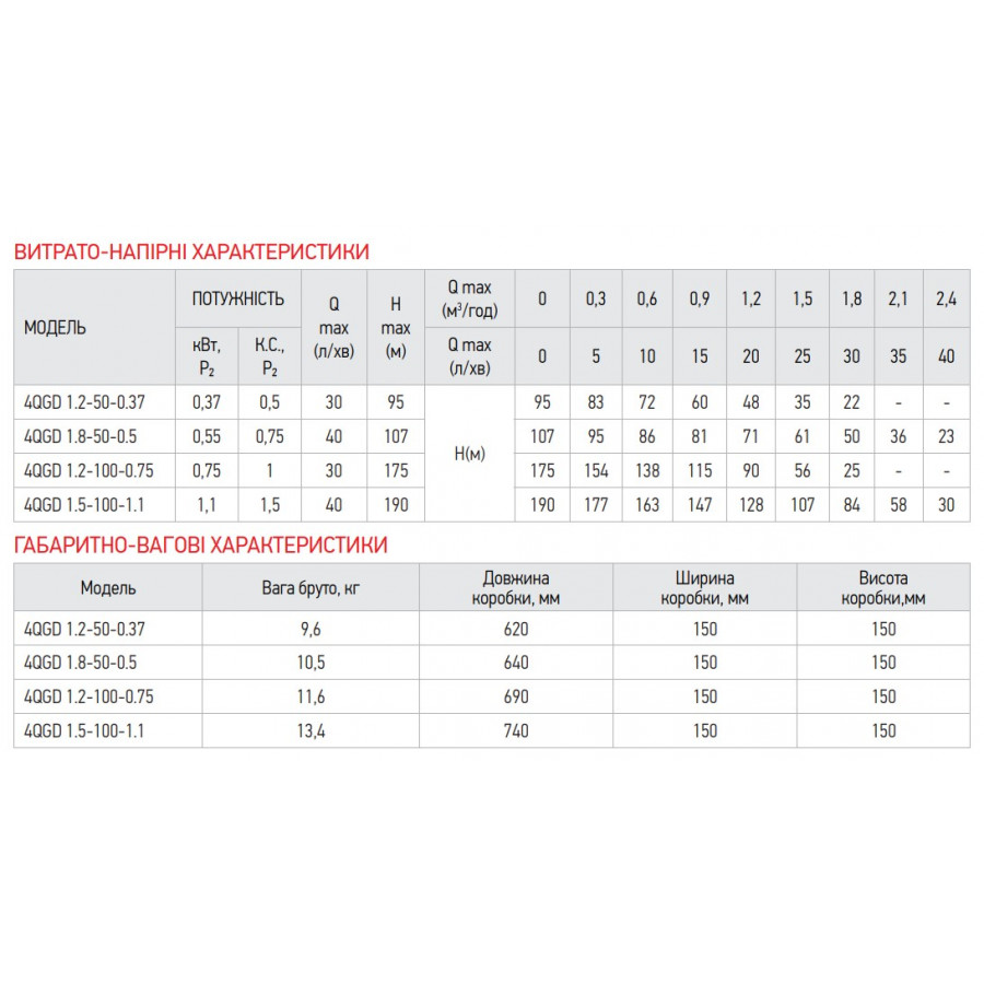 Технічні характеристики насоса Koer 4QGD 1.2-50-0.37 (KP2647)