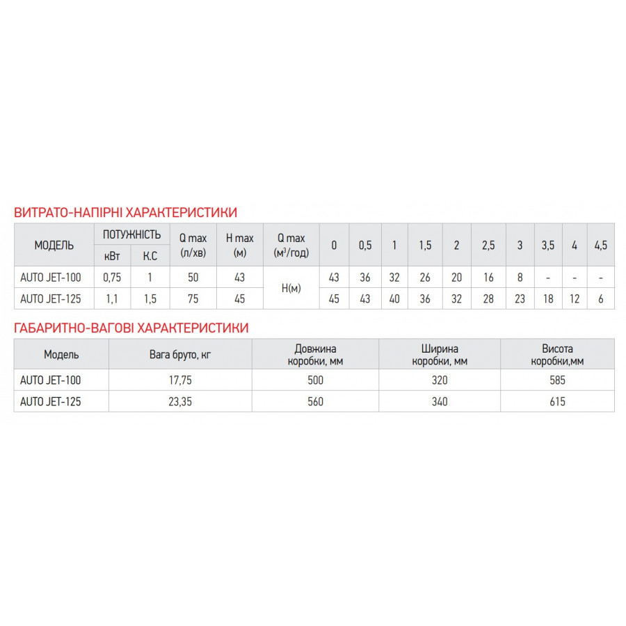 Технічні параметри насосної станції Koer auto JET-125 (KP2667)