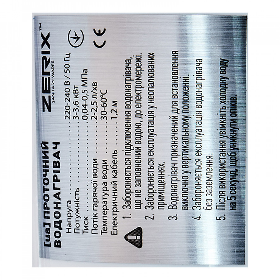 Проточний водонагрівач Zerix ELW08-EW (з індик. темп.) (ZX2788)