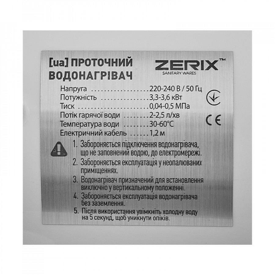 Як правильно встановити проточний водонагрівач Zerix ELW21-F-WHITE?