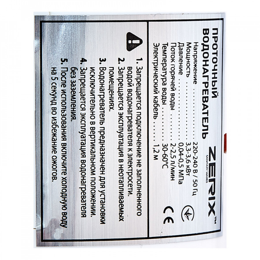 Проточний водонагрівач Zerix ELW44-E (ZX4698) – ваш надійний помічник у забезпеченні гарячою водою