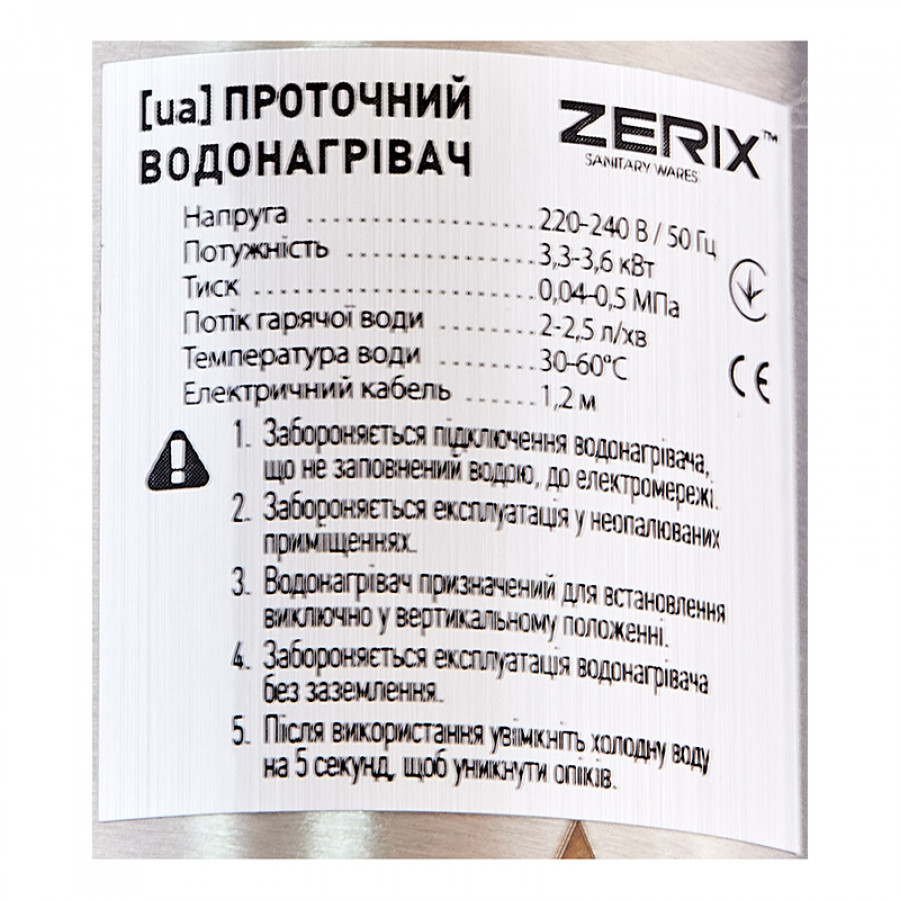 Проточний водонагрівач Zerix ELW55-E (з індик. темп.) (ZX4777)