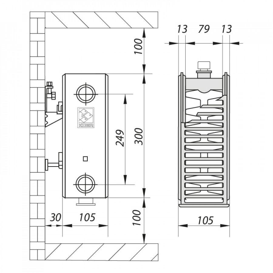 Монтаж радіатора KOER 22х300х1400.B здійснюється за допомогою стандартних комплектуючих для нижнього підключення, що дозволяє інтегрувати його у вже існуючі системи опалення з мінімальними зусиллями. Рекомендується встановлювати радіатор у сухих приміщеннях з правильно організованою циркуляцією теплоносія.