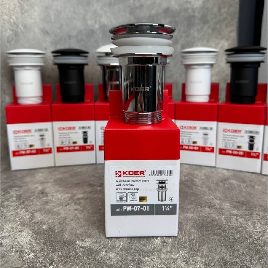 Донний клапан Koer PW-07-01 1 1/4'' з переливом автоматичний СLICK-СLACK (Колір хром) ідеально підходить для: