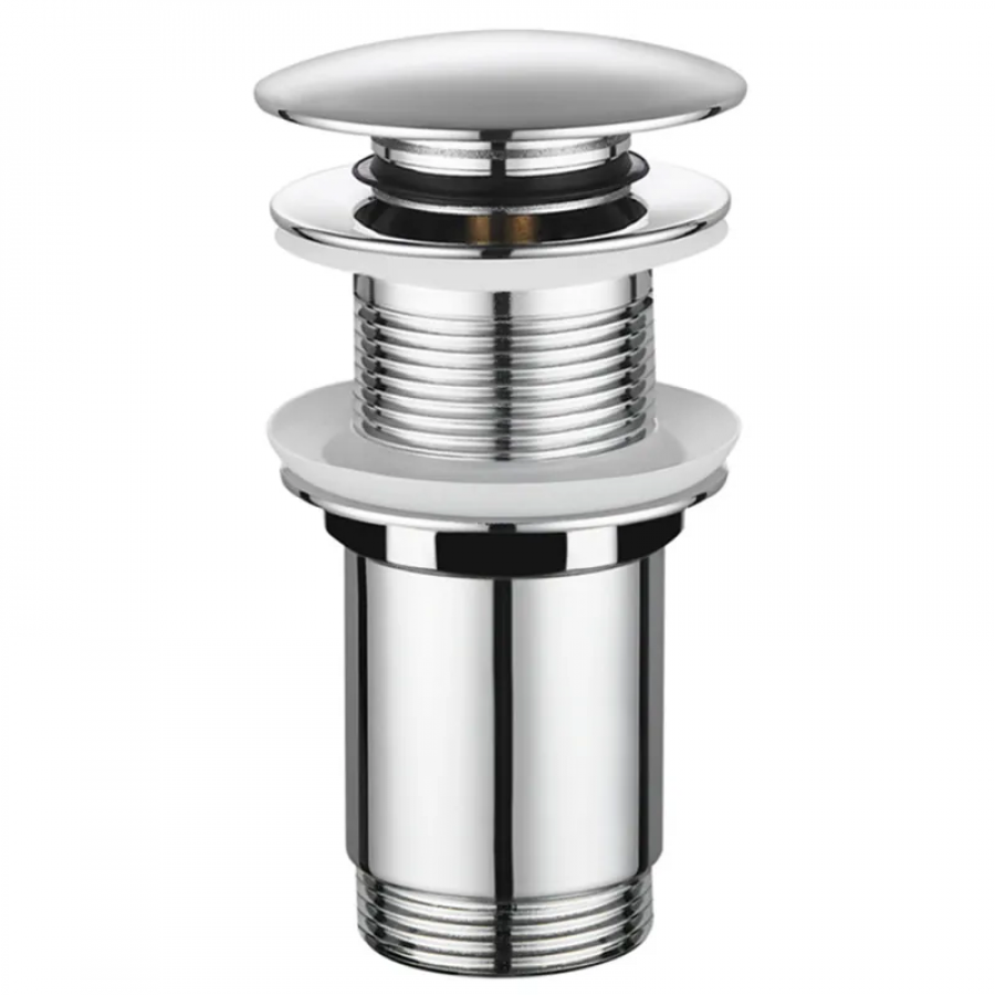 Клапан встановлюється в отвір стандартного діаметра 1 1/4'', що робить його універсальним для більшості раковин без функції переливу. Завдяки чіткій роботі автоматичного механізму, ви легко зможете контролювати злив води одним натисканням.