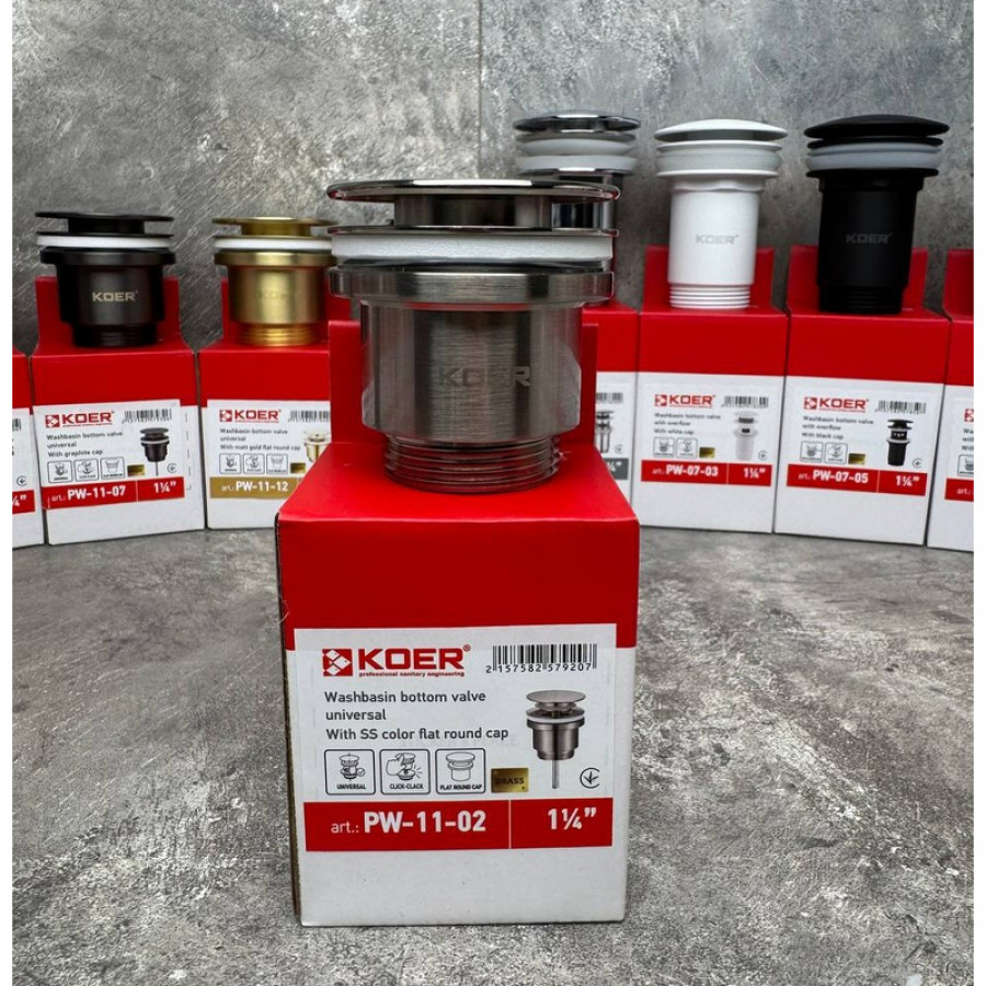 Обирайте донний клапан Koer PW-11-02 1 1/4'' CLICK-CLACK SS COLOR – і зробіть свою ванну кімнату ще більш функціональною, сучасною та стильною!