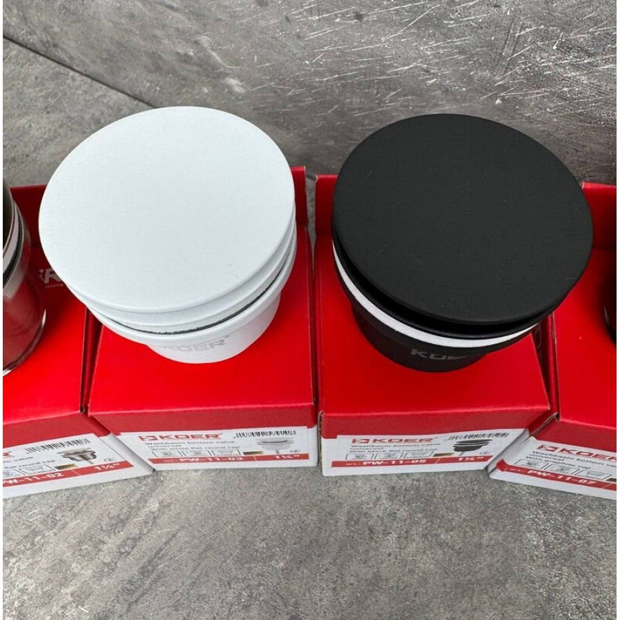 Донний клапан Koer PW-11-03 1 1/4'' — це сучасне та практичне рішення для організації зливу води у вашій раковині. Виріб від відомого бренду KOER вирізняється універсальністю, якістю матеріалів та зручністю експлуатації. Ця модель виконана у стильному білому кольорі, що гармонійно поєднується з різноманітними інтер'єрними рішеннями ванної кімнати чи кухні. Завдяки інноваційному механізму CLICK-CLACK, донний клапан забезпечує простоту управління зливом води — достатньо одного натискання для відкривання чи закриття зливного отвору.