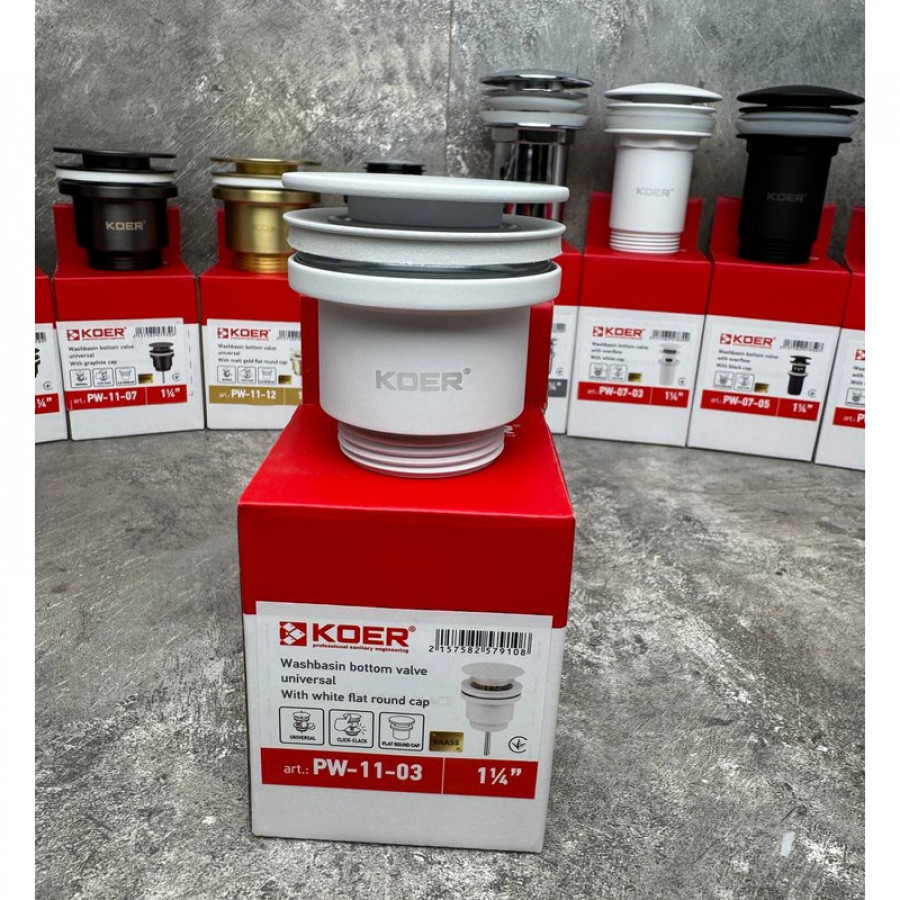 Теги: Донний клапан для раковини Koer PW-11-03 1 1/4'' універсальний (з/без перел) СLICK-СLACK (Колір бі, , KR5791, Сантехніка, Сифоны, трапы