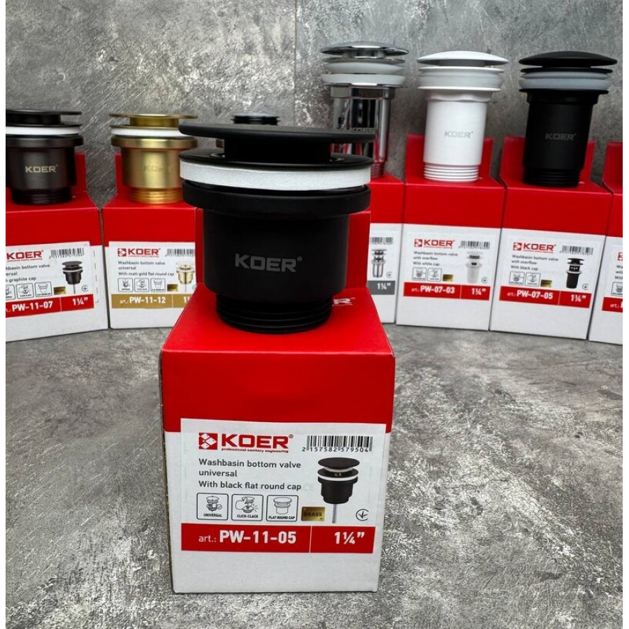 Теги: Донний клапан для раковини Koer PW-11-05 1 1/4'' універсальний (з/без перел) СLICK-СLACK (Колір чо, , KR5795, Сантехніка, Сифоны, трапы