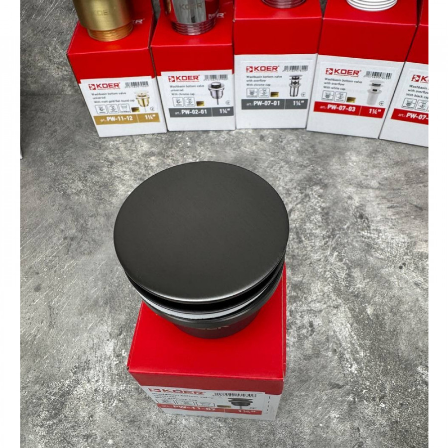 Донний клапан для раковини Koer PW-11-07 1 1/4'' універсальний (з/без перел) СLICK-СLACK (Колір гр
