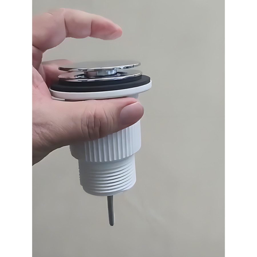 Донний клапан Pop-Up-10 від Mixxus забезпечує комфортне та безпечне користування раковиною. Система CLIC-CLAC дозволяє відкривати та закривати слив одним простим натисканням, що гарантує герметичність і зручність навіть при частому використанні. Матеріал корпусу – стійкий ABS-пластик – дозволяє витримувати температуру води до 95°C, а також забезпечує довговічність вироба без корозії та зміни кольору.