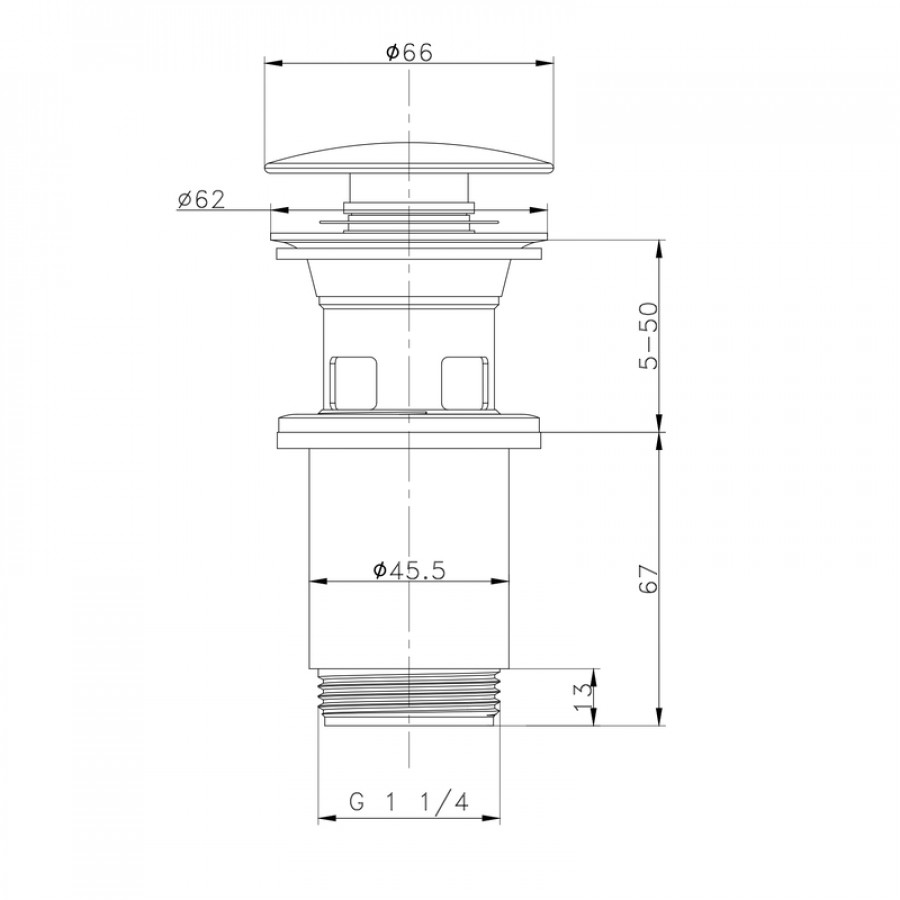- 1 1/4'' стандартний розмір підходить для більшості моделей раковин з переливом, забезпечуючи універсальність встановлення.