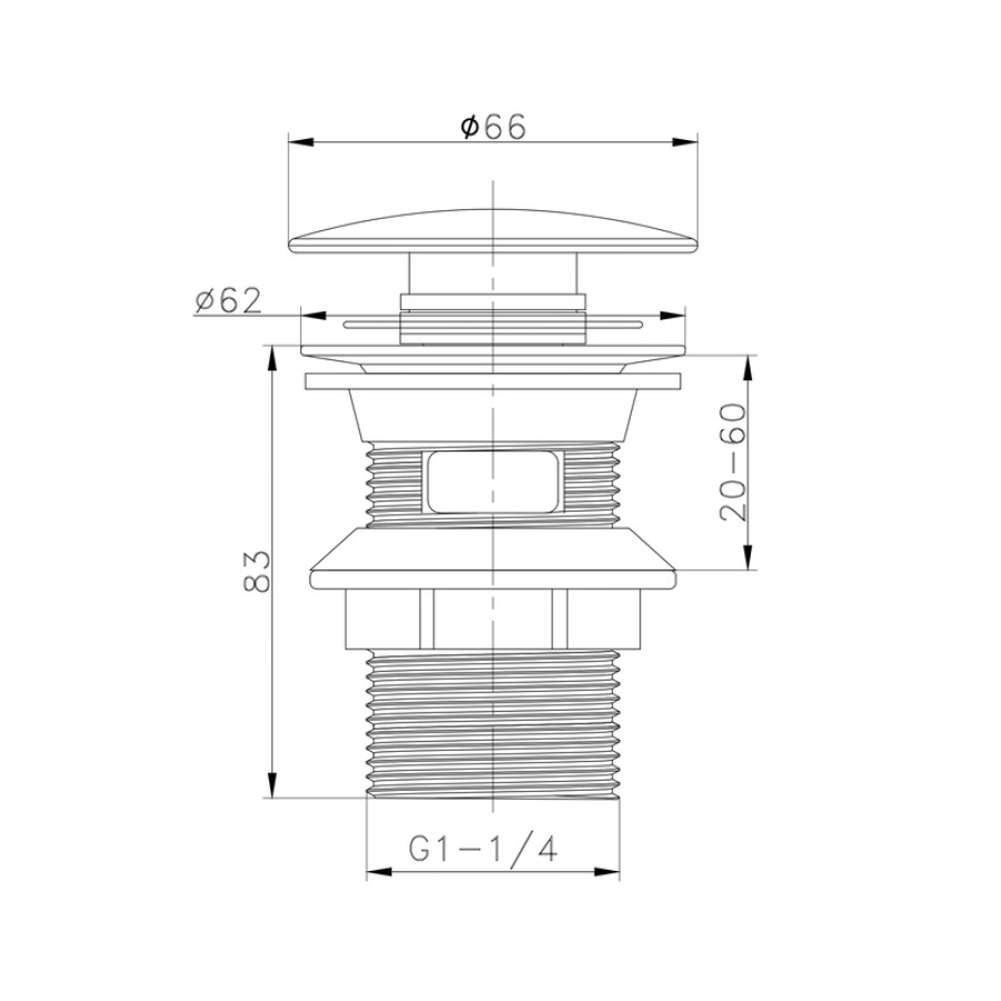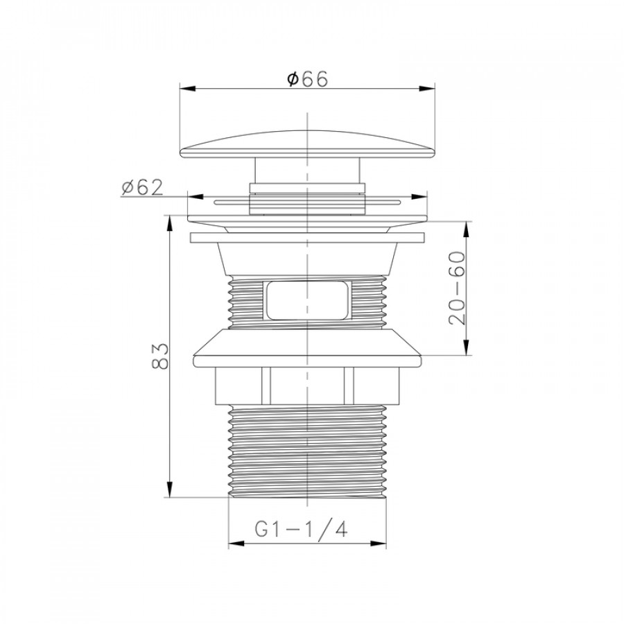 - Легкість монтажу – уніфікований розмір 1 1/4'' дозволяє встановлювати клапан у більшості стандартних раковин без додаткових адаптерів.