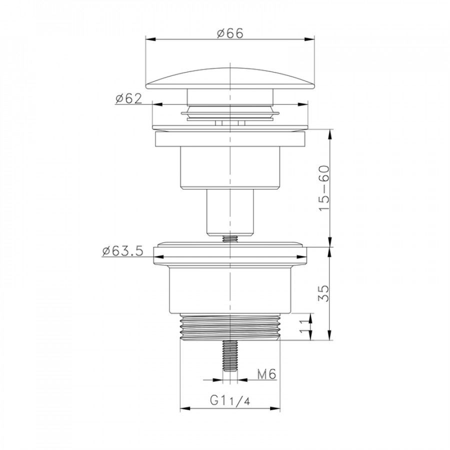 - Можливість монтажу з будь-якою раковиною: універсальний розмір 1 1/4'' дозволяє легко інтегрувати клапан у більшість моделей раковин.