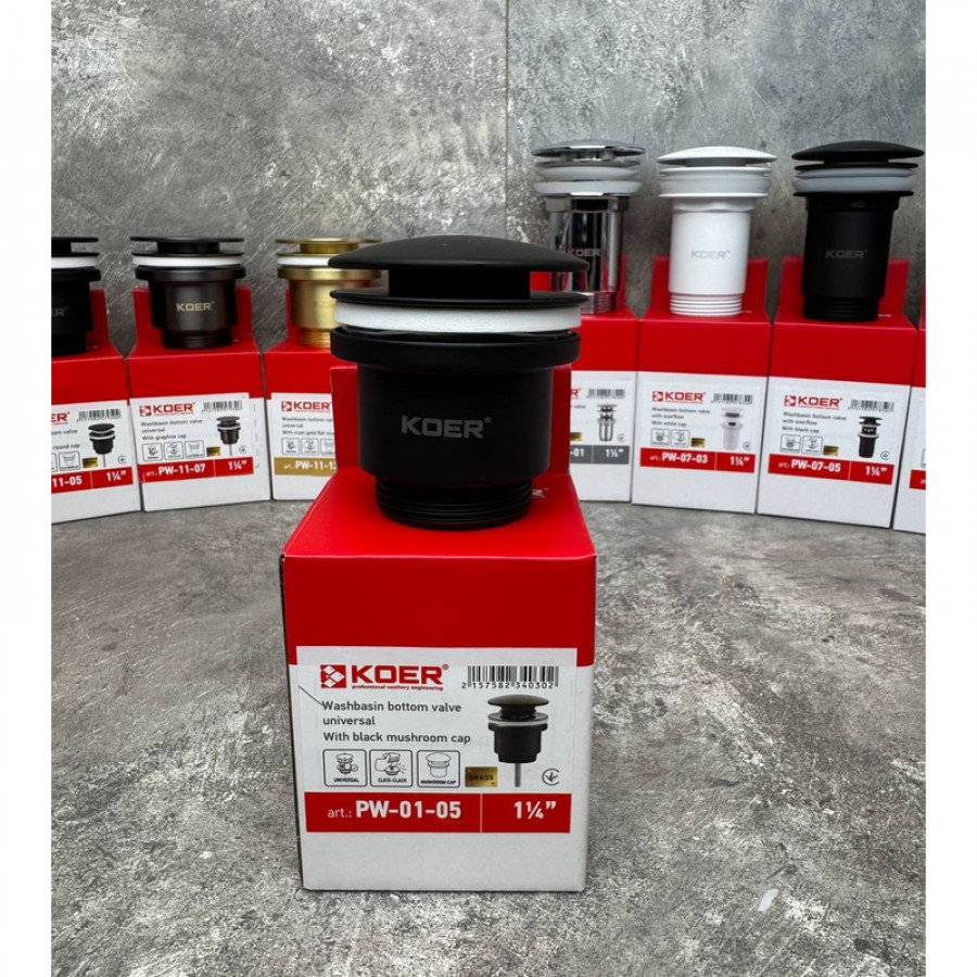 Донний клапан для умивальника Koer PW-01-05 1 1/4'' (кнопка) (Чорний) (KR3403) – ідеальне рішення для вашої ванної кімнати