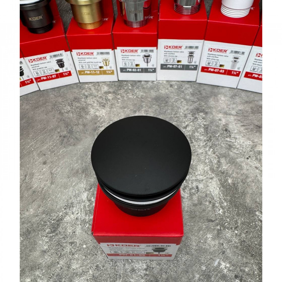 Донний клапан для умивальника Koer PW-01-05 1 1/4'' (кнопка) (Чорний) (KR3403)