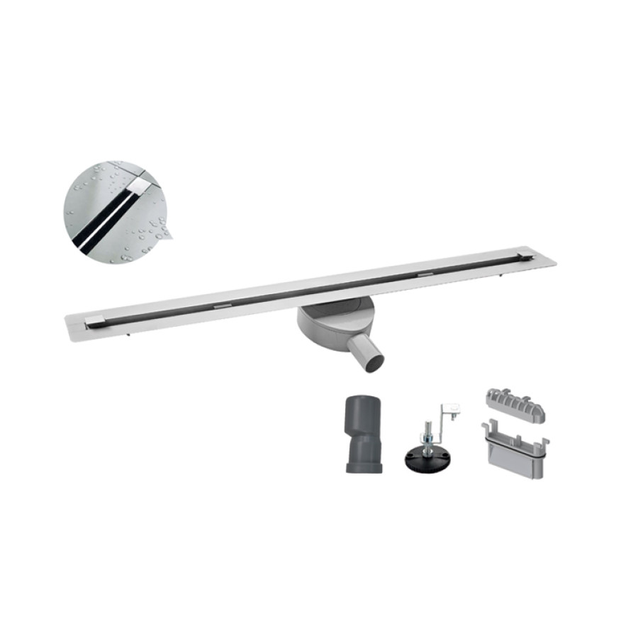 - Легка інтеграція – завдяки регульованій висоті ринви та ухилу внутрішньої частини трап легко монтується в будь-яку душову зону.