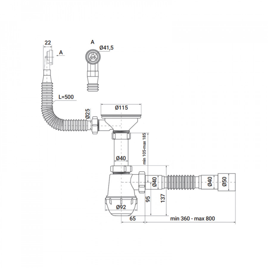 - Розмір: 3 1/2"x40 мм – стандартний діаметр, сумісний з більшістю моделей кухонних мийок;