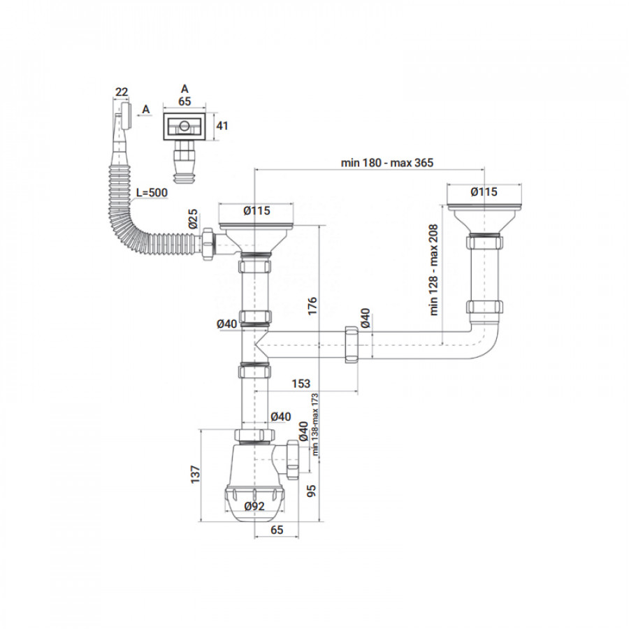 Сифон ZERIX SK-03-A – це якісний та функціональний елемент сантехнічної системи, який ідеально підходить для кухонних мийок. Виріб оснащений двома різьбовими випусками та додатковим відведенням для підключення пральної машини, що робить його незамінним у сучасних умовах експлуатації.