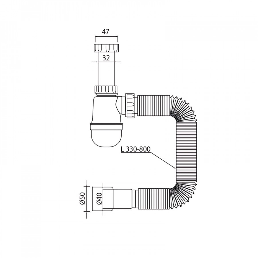 Ця модель ідеально підходить для стандартних умивальників із підключенням 1 1/4"x32 мм. Універсальні розміри виходу в каналізацію (32*40/50 мм) роблять його сумісним з більшістю каналізаційних систем, що значно полегшує монтаж та подальше обслуговування.