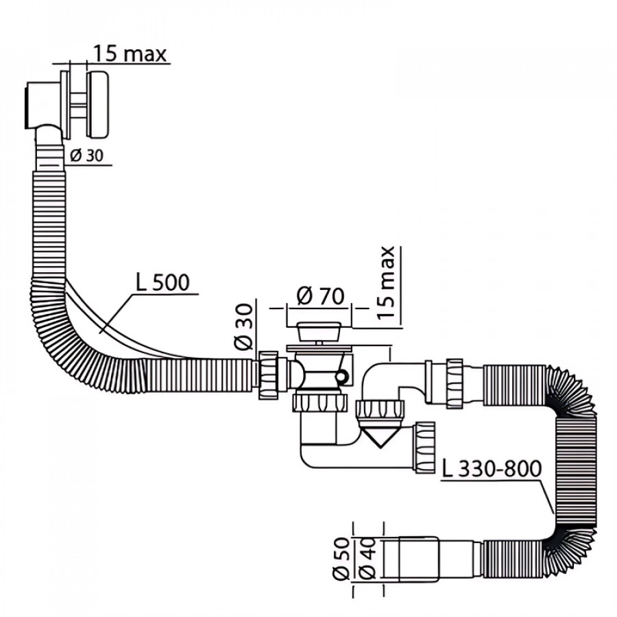 - Наявність ревізії — забезпечує швидкий доступ до внутрішніх частин сифону для очищення та профілактики засмічень.