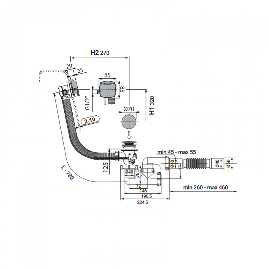 Теги: Сифон для ванної Zerix SV-02-B з ревізією, переливом "напівавтомат" (трос 580 мм) (ZX4960), , ZX4960, O&L, Сифоны, трапы