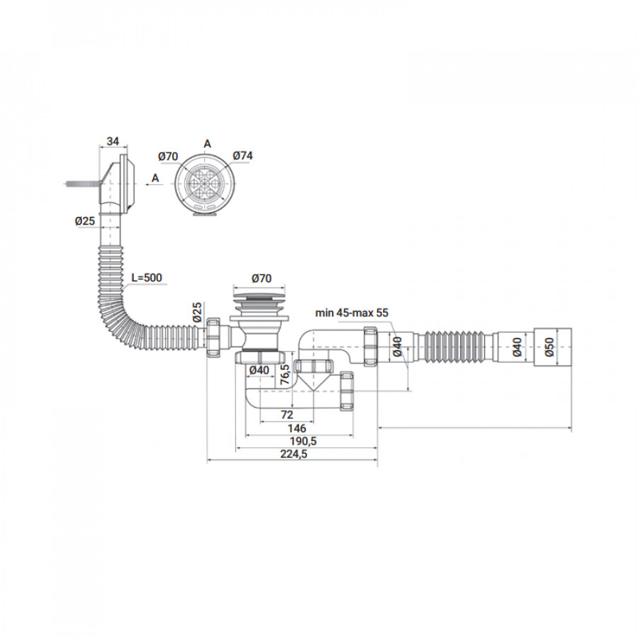 - Діаметр підключення: стандартний 50 мм.