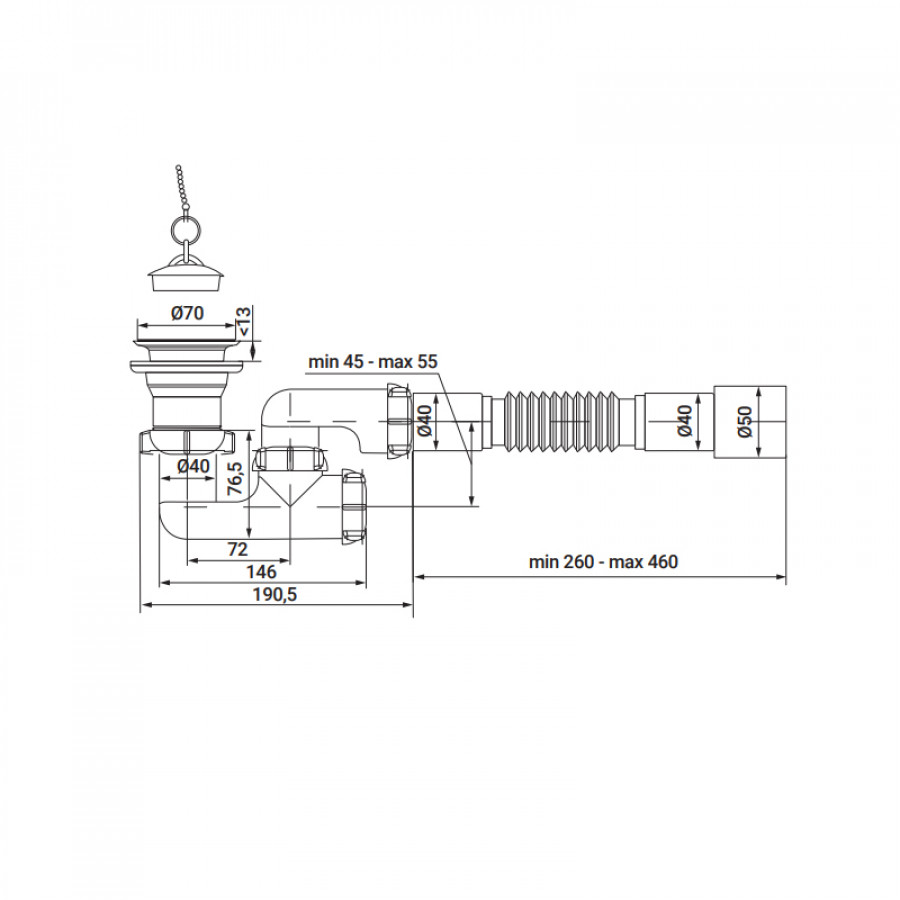 - Тип сифона: з ревізією та випуском, що дозволяє легко проводити очищення та профілактичний огляд;