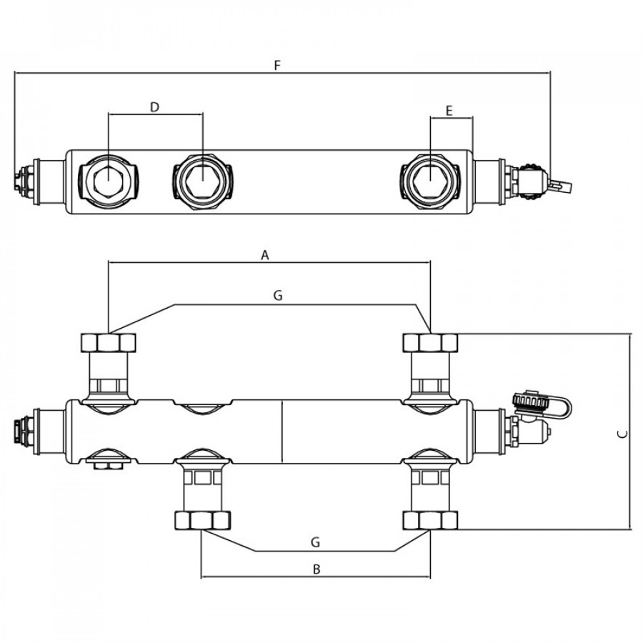 - Додаткові елементи: повітровідвідний клапан та дренажний кран 1-1/4" НР для зручного обслуговування системи;