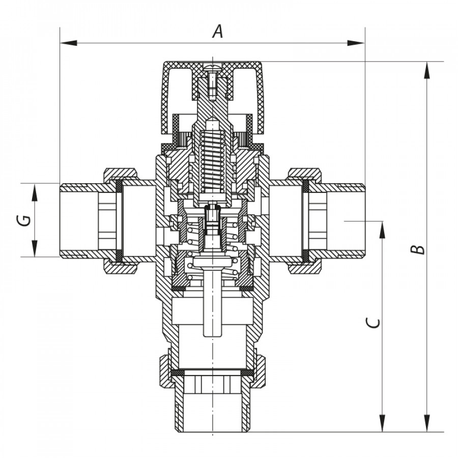 - Тип: термостатичний триходовий клапан;