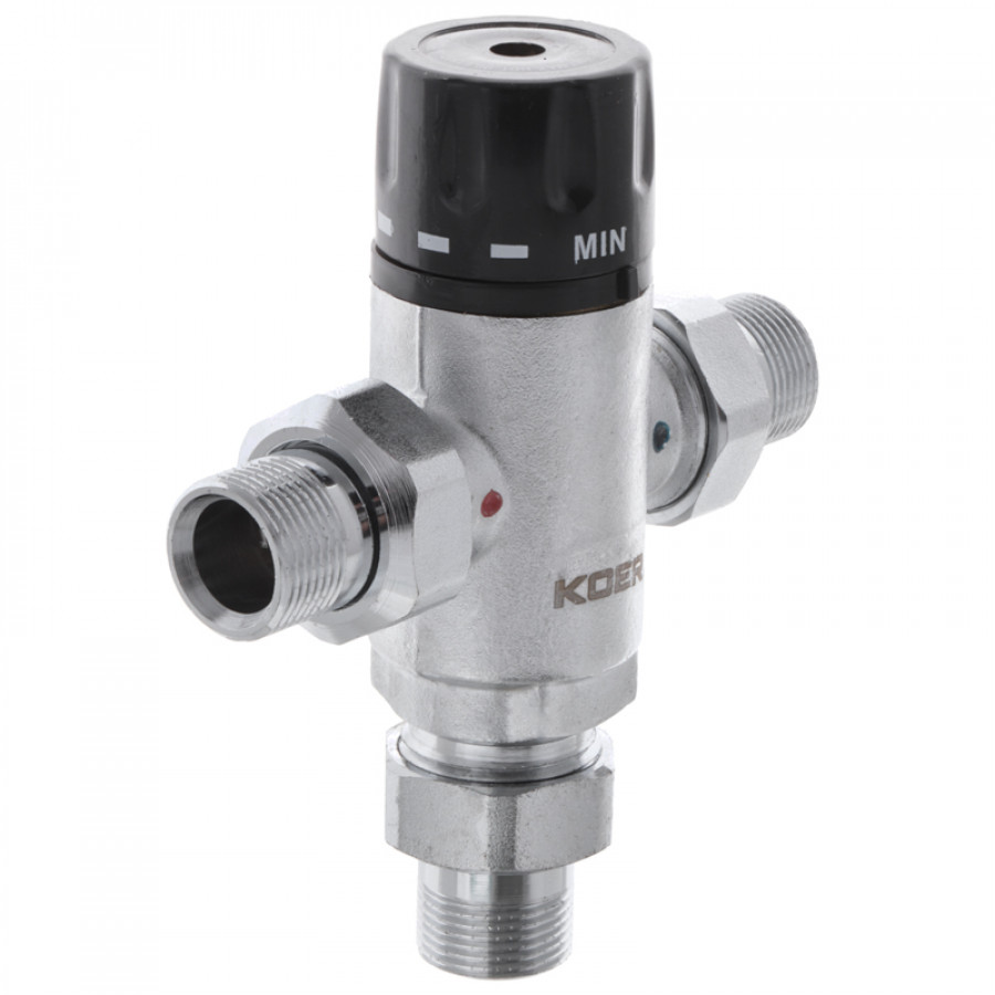 Клапан змішувач термостатичний триходовий 3/4'' (з накидн. гайками) Koer KR.1258 (KR2818)